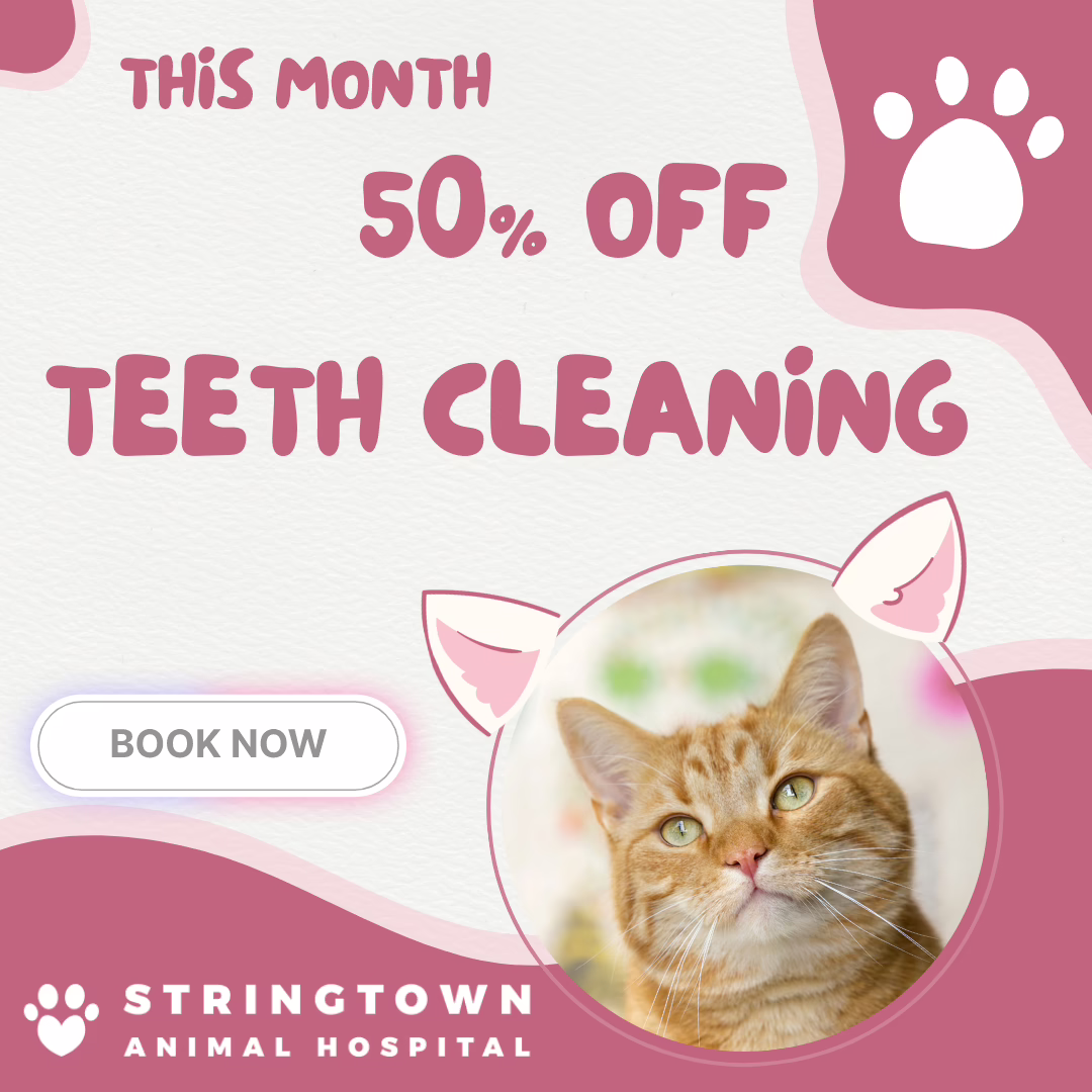 We run 50% off teeth cleaning promotions twice a year. This is a great time to save money and keep your pet healthy. Watch our social media for promotion rollout info.